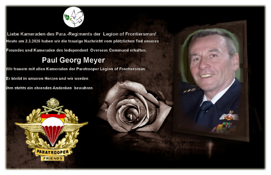 Mit der Präsentation der Webseite der Paratrooper-LF der „Legion of Frontiersmen (IOC)“ möchten wir aktive, sowie ehemalige Soldaten, aber auch Zivilisten ansprechen, die sich den Zielen unserer Organisation verpflichtet fühlen. Unsere Einheit ist Bestandteil einer uniformierten Organisation mit militärischen Strukturen. Sie ist fest in die traditionsreiche Geschichte der
